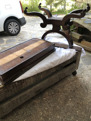 😍 Il est dommage de mettre un piétement en hêtre car ce bois est très souvent attaqué par les vrillettes du bois et alors ce sont beaucoup de dégâts. Mais il est certain que cette Table de toilette en bois précieux à traversé les temps sans dommage et que le climat chaud n'est pas propice à la conservation des bois fruitiers ! Mais, je lui ai refait une beauté : décapage, traitement insecticide et de nouvelles finitions. Et puis, le petit cadeau pour moi c'est la commande du miroir cachée dans le meuble. J'adore. 🌞